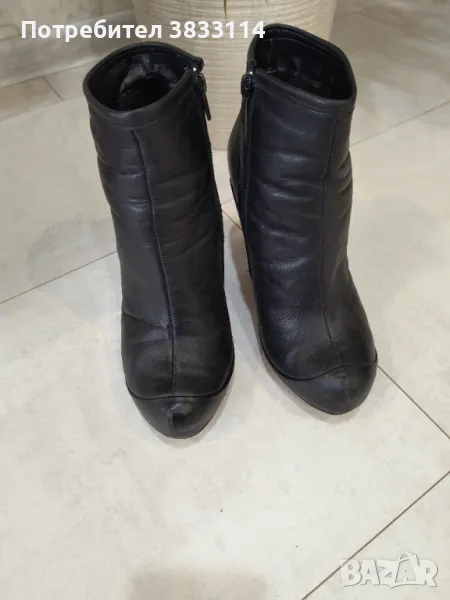 Боти естествена кожа, без забележки, с много леки след от употреба. Височина на тока 10 см, платформа 3 см. Много удобни. Отговарят си на номера.