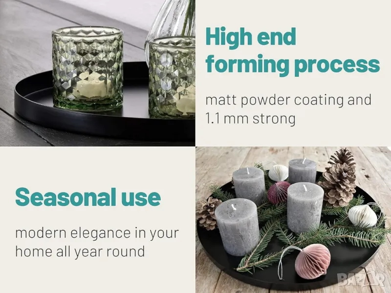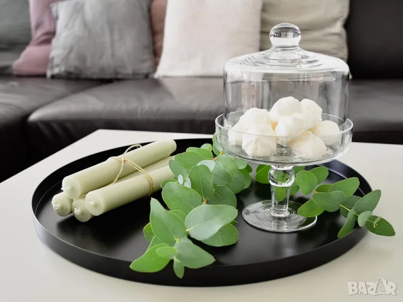 Продавам стилна и модерна черна декоративна тава от висококачествената серия "Pleto" на марката DD Living. Тавата е с диаметър 40 см и е идеална за добавяне на елегантен акцент във вашия дом. Перфектна за декориране на маса, сервиране на напитки или като основа за други аксесоари.