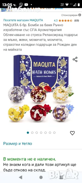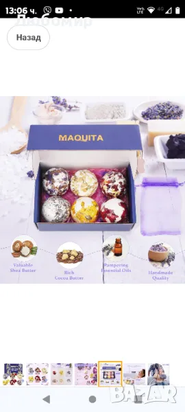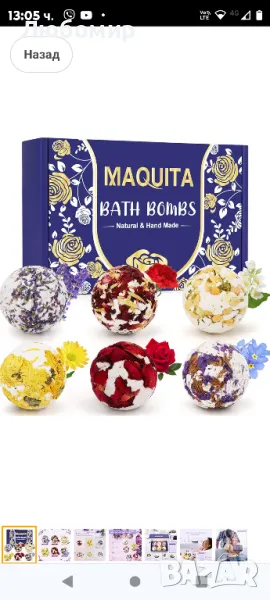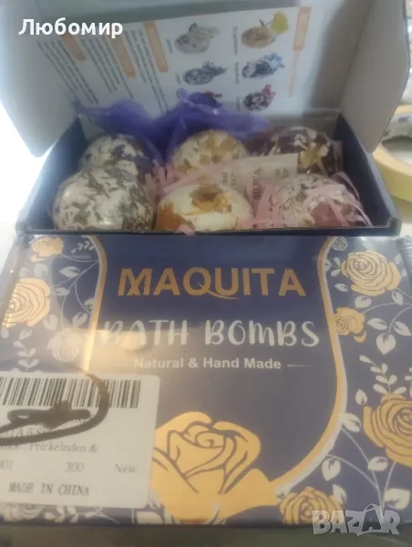 MAQUITA включва малка мрежеста торбичка, в която да поставите бомбата за баня, за да предотвратите запушването на ваната от венчелистчета.Насладете се на комфорта на банята с комплекта бомби за баня MAQUITA, ще се почувствате толкова спокойни и удобни. Хвърлете бомбата за баня във ваната и изпуснете приятното ухание. Благоуханният аромат ще ви накара да забравите тежката работа на деня. Насладете се на момент на чист релакс и благополучие.Без жестокост, всички бомби за баня са направени с натурални етерични масла, плодови екстракти, цветни листенца и органично масло от шеа.. Най-новата формула осигурява прекрасен ефект на мехурчета, предоставяйки ви луксозно спа изживяване у дома . Всяка топка за баня е индивидуално опакована. за да осигурите по-дълго време за съхранение и по-добро изживяване.Този комплект, състоящ се от бомби за баня MAQUITA с интензивни и възвишени аромати, ще ви отведе на необикновено пътешествие на чиста релаксация и щастие. Докато стоите във вашата баня, открийте типичните усещания и аромати, които ви пренасят от Средиземно море до красивите екзотични плажове. Включва естествените аромати на хризантема, карамфил, лавандула, роза, жасмин и цветя на незабравка
