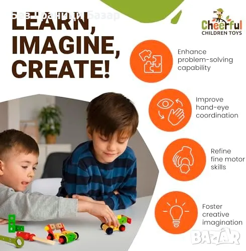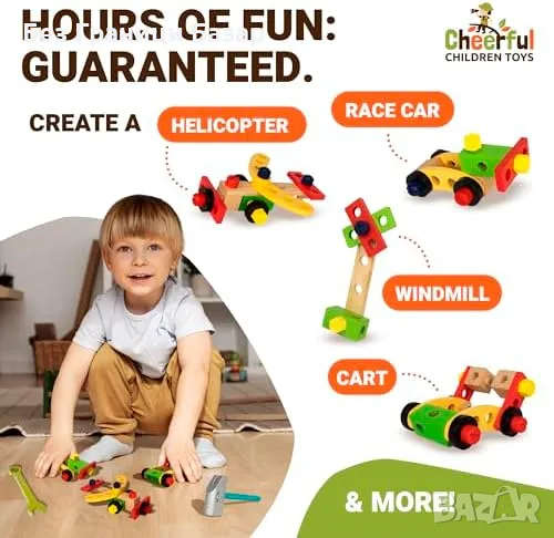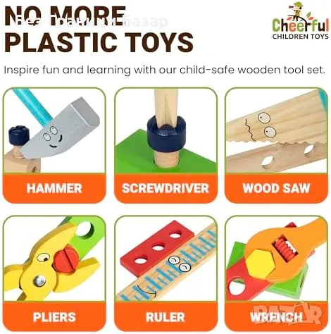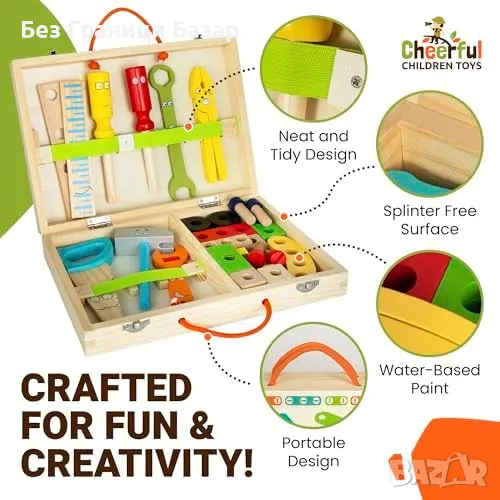 Дървен комплект с инструменти, 36 части, подходящ за деца 3-7 г.