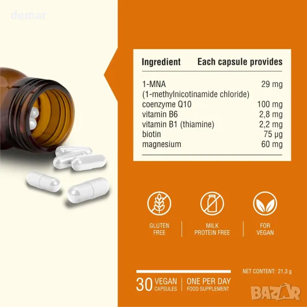 Ендотелио клетъчна 1-MNA, оптимизиране на NAD+, анти стареене с CoQ10, магнезий и В комплекс