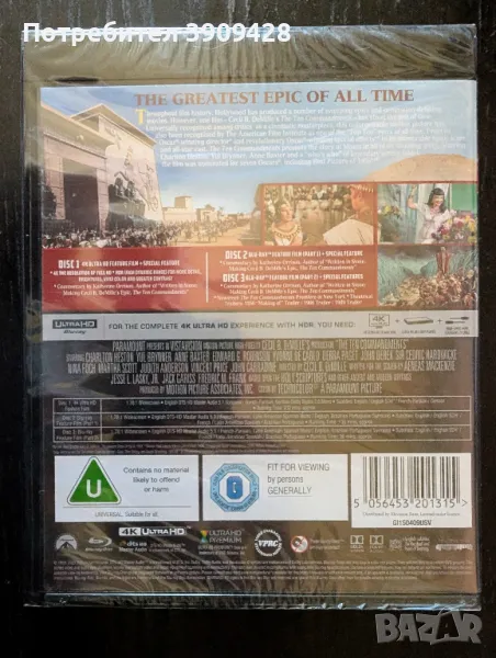 "Десетте Божи заповеди" (The Ten Commandments) - величественият епос на Сесил Б. Демил, сега в зашеметяващо 4K и Blu-ray качество! Внимание: Това е специално издание, абсолютно ново и неразпечатано!