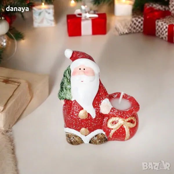 керамичен коледен свещник, коледна украса, празнична декорация, Дядо Коледа, свещник с Дядо Коледа, празничен свещник, коледен аксесоар, коледна декорация за дома, зимна атмосфера, уют и топлина, подарък за Коледа, ръчно изработен свещник, свещник с фигура, коледни символи, празничен декор