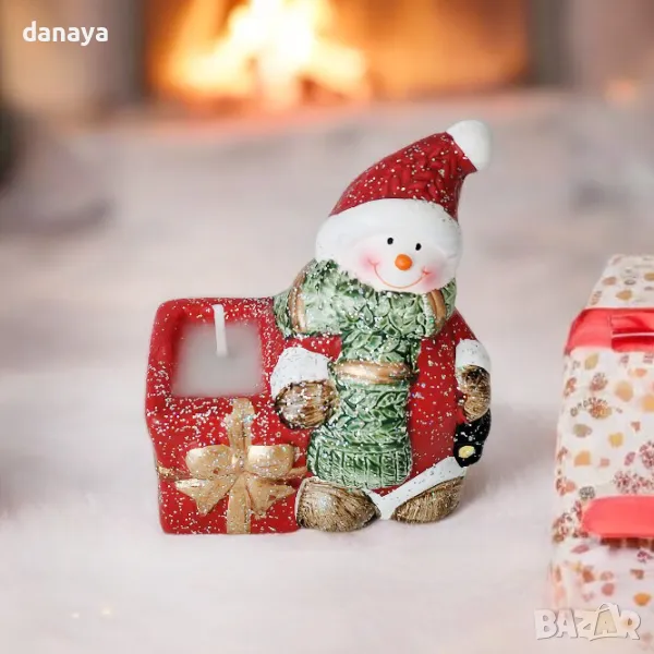 Керамична коледна фигурка с вградена свещичка в нея. Красива коледна декорация за празничната маса за Коледа. Керамичен свещник с фигура на Дядо Коледа или Снежен човек.