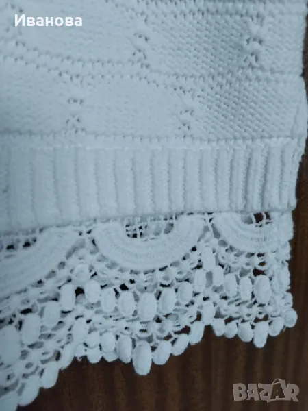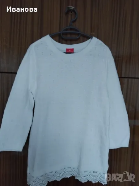 Красива снежнобяла блуза с дантела на ластика. По етикет С размер, но става и за М.