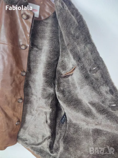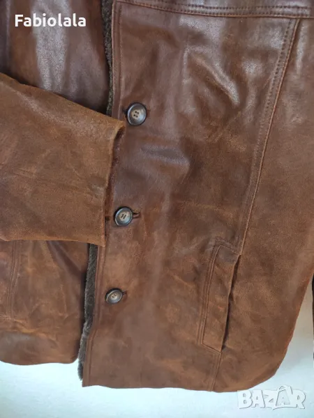 Яке от естествена кожа с подплата имитация на косъм, закопчаване с копчета и 5 джоба.