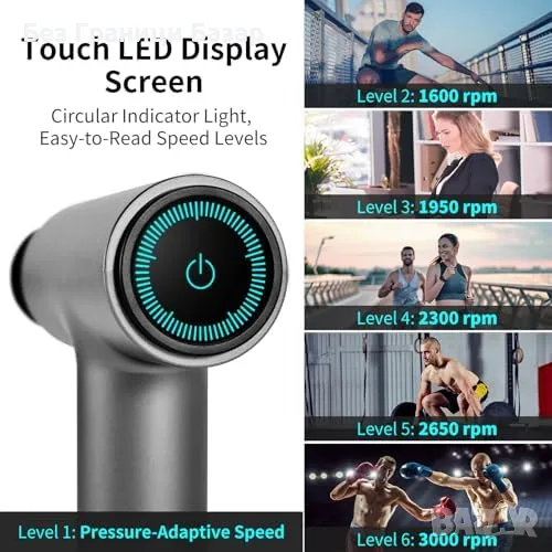 Нов Масажен пистолет arboleaf, 6 скорости, 5 глави за дълбок масаж