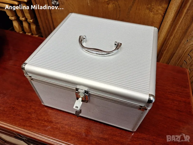 Алуминиево куфарче за CD и DVD. УНИКАЛНО куфарче за много дискове, внос от Дания. Куфарчето е алуминиево с дръжка, отделения за много дискове и заключващ механизъм. Има и ключе за допълнително заключване. Отлично състояние. Само за ценители! Разполагам с два броя идентични куфарчета. Цената е за 1 брой. Разгледайте и другите ми обяви. Размери:Дължина - 30 см.Ширина - 28 см.Височина - 20 см.Цена - 160 лв за 1 брой.