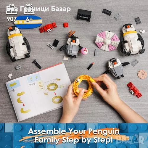 Комплект с 907 части за създаване на очарователно пингвинско семейство.