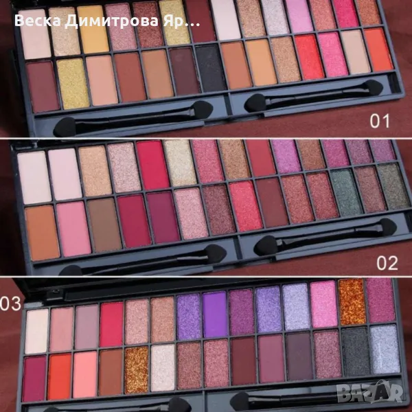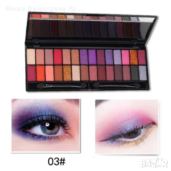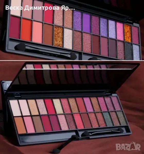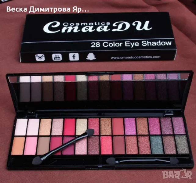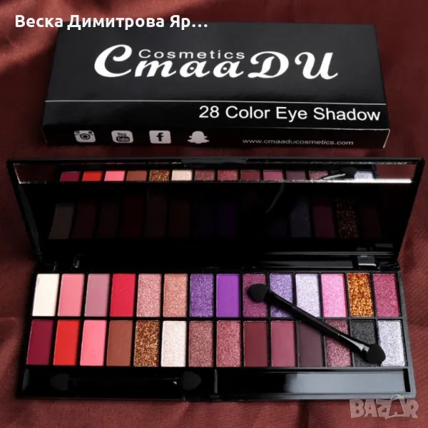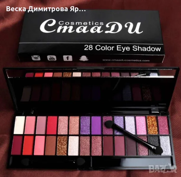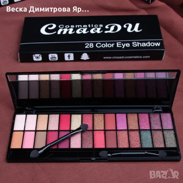 Палитра сенки за очи с 28 нюанса, 2 четки за гримиране и огледалце - HZS382 → Обява 47652513