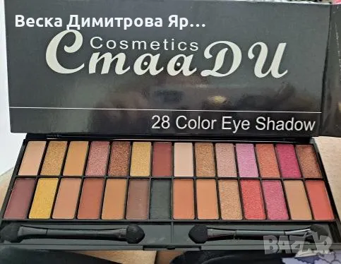 28 цвята палитра сенки за очи.Преносим и удобен за използване.Качествени съставки с цвят копринен блясък, издържат цял ​​ден!Лесни за рисуване красиви сенки около очите издържат дълго.Дава ясни и интензивни грим ефекти и ви прави очарователни и привлекателни.Перфектен за професионален салон, сватба, парти и домашна употреба.Тип продукт: Диамантена плоча за сенки за очиЕфект: дълготраен, водоустойчив