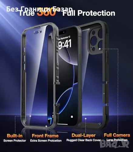 Нов калъф кейс 360° защита за iPhone 16 Pro Max – капак за камера и екран