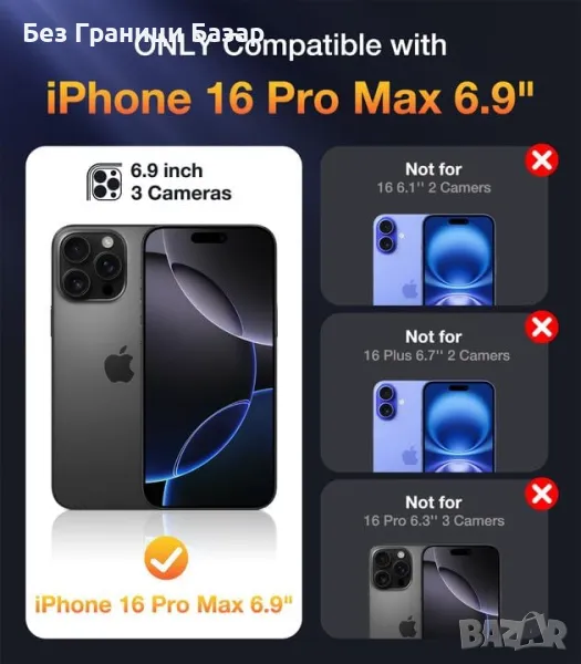 Проектиран за iPhone 16 Pro Max 6.9", лесен за монтаж и демонтаж.