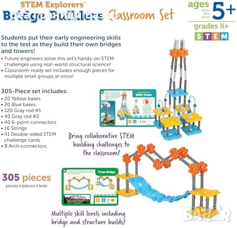 Нов Конструктор STEM комплект Мостове 305 части за деца над 5 години