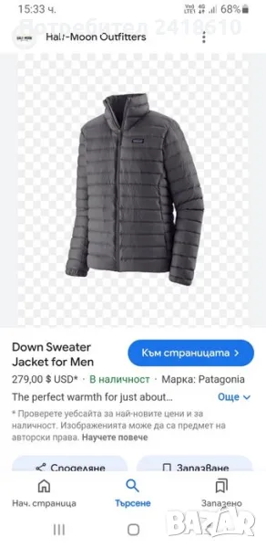 Patagonia Down Jacket Mens Size S НОВО! ОРИГИНАЛ! Мъжко Яке!