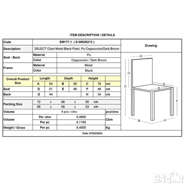 Трапезен стол Select Капучино тъмно кафяв → Обява 47653358