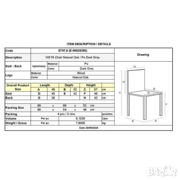 Стол трапезен Vista тъмно сив, снимка 1 - Столове - 47653592 Стол трапезен Vista тъмно сив, снимка 2 - Столове - 47653592 1/2
