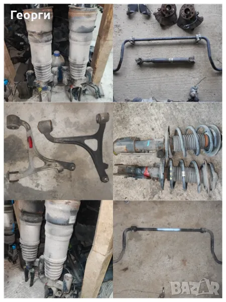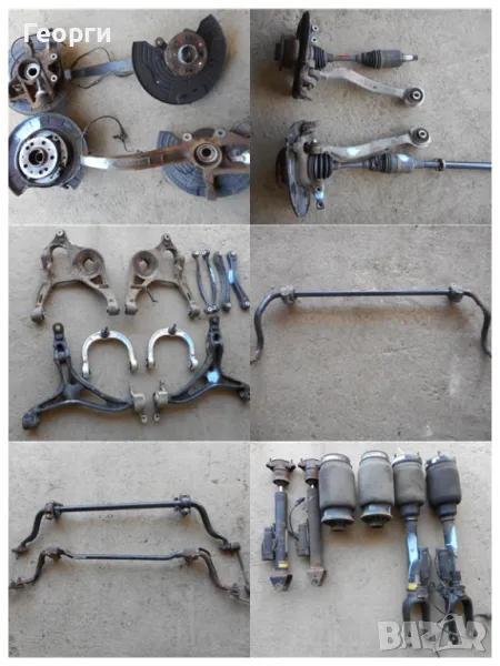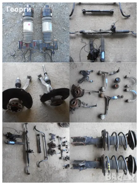 Полуоски, раздатка, рейка, носачи - горни и долни, амортисьори - предни и задни, шенкели, кардани - предни и задни, картери 4 матик, магарета - предни и задни, стабилизиращи щанги, биалетки, тампони за двигател, главини, скоростни кутии, диференциали - предни и задни, компресори за окачването, пружини, спирачни апарати и дискове, 4 матик модули, абс датчици, вакуум съдове.