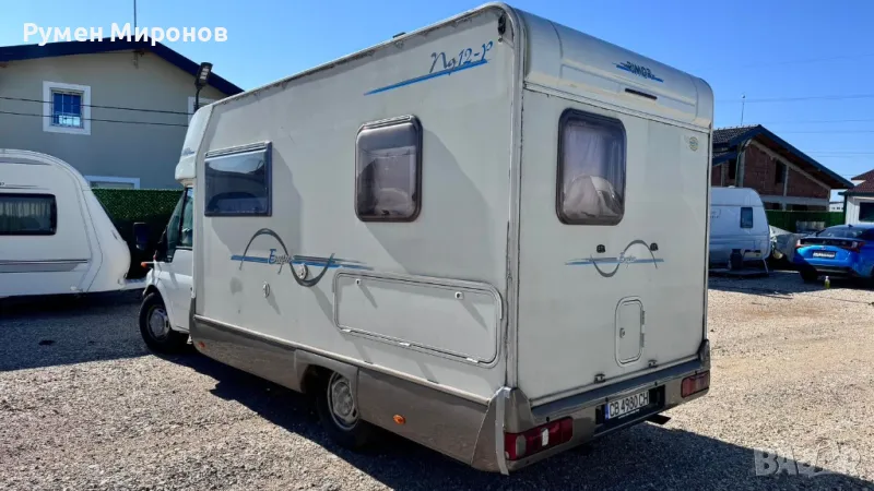 Продавам полу-интегриран кемпер Форд Транзит, 2005 година, 2.0 TDCI, 125 коня, до 3.5 тона.Климатик към двигателя.Разположение, срещу вратата, голямо сепаре, което става на спалня за двама човека. Под него място за багаж. Срещу него, кухненски бокс с газови котлони, мивка с топла и студена вода и хладилник на 12/220 волта, ГАЗ с голяма камера. В дъното от дясно, френска спалня с място за багаж под нея, където се намира Комбито (парно и топла вода),два акумулатора и инвертора.В ляво от спалнята, баня с тоалетна, която се обслужва от вън. - зимни и летни гуми - два солара по 130 вата - контролер Виктрон- два AGM акумулатора по 95 ампера - инвертор пълна синусоида 1500/3000 вата - рампа за скутер. Кемпера се намира в София, район Божурище. Огледи по всяко време след уговорка. Договаряне на цената на място. Цена 18000 евро.