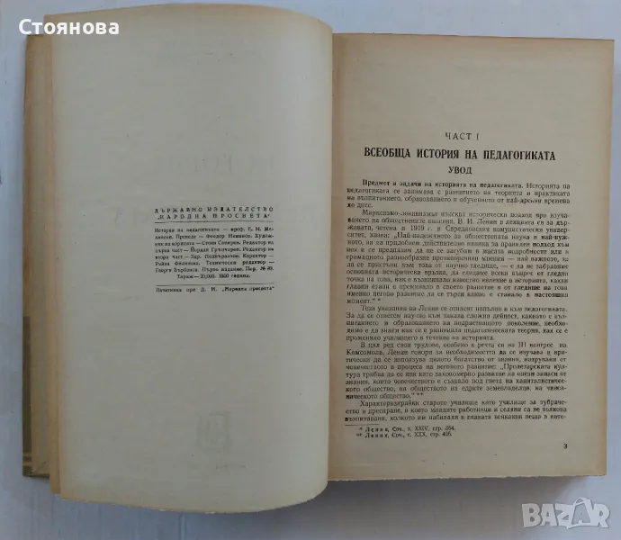 "История на педагогиката" Е.Н.Медински 1950 г. → Обява 47655251