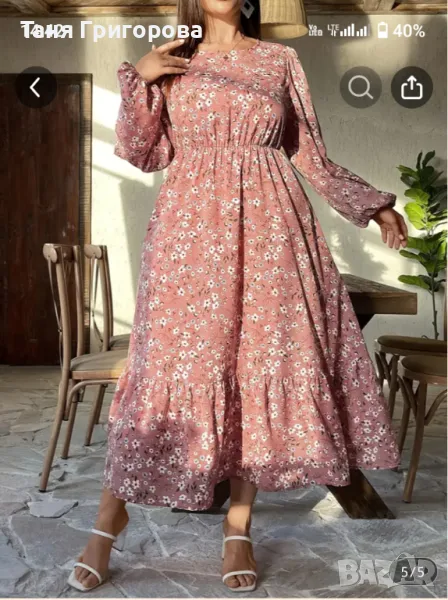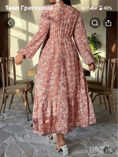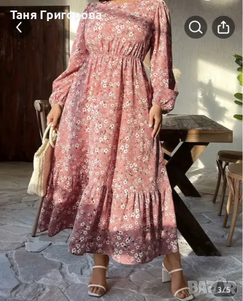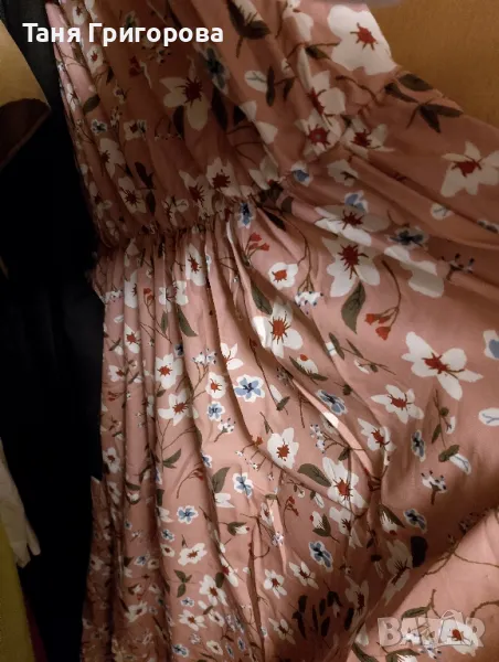 Дълга флорална рокля цвят сьомга → Обява 47655679