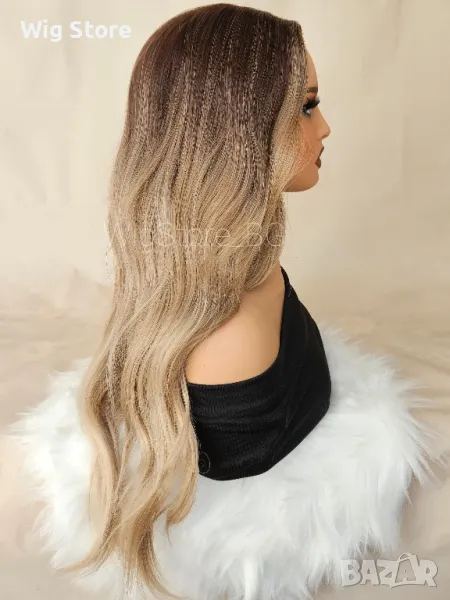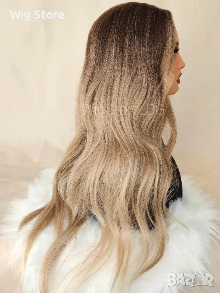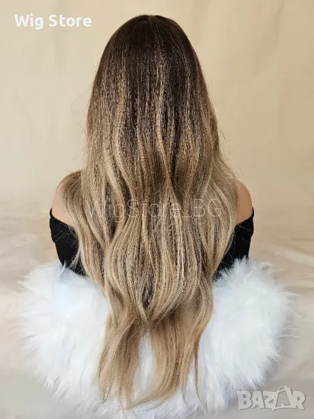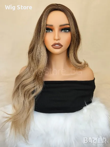 Светло кестенява перука без бретон на леки вълни → Обява 47656314
