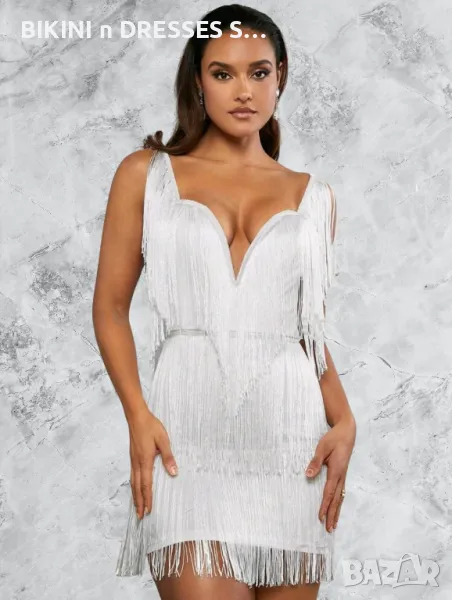 Елегантна бяла рокля с ресни → Обява 47659687