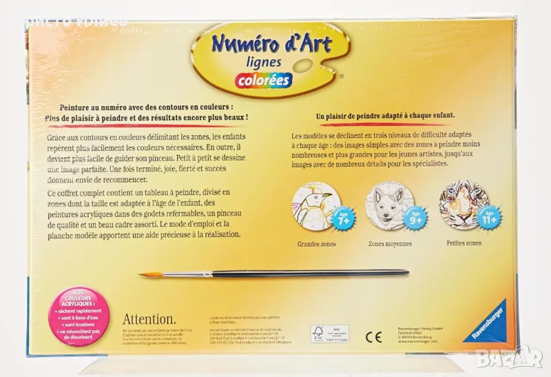 Сред 7-те широкоформатни изображения за рисуване и окачване, това коте и това кученце ще зарадват децата и ще попълнят техните колекции. От 7 години. Този продукт е направен от материали от добре управлявани FSC® сертифицирани гори, рециклирани материали и материали от други контролирани източници