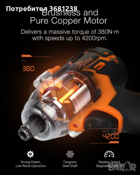 Име: Безчетков ударен гайковерт Topshak TS-PW1
