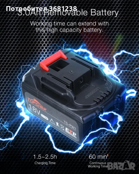 Капацитет на батерията: 3.0 Ah (10X1500mah-Cell)