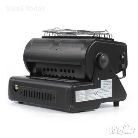 Газова печка+ котлон, Пиезо запалване, 2 в 1, Черен