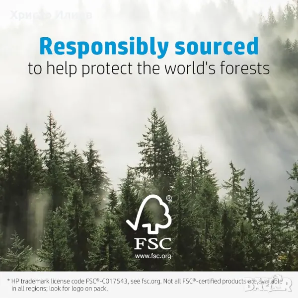 Проектирани с мисъл за околната среда, фотохартиите на HP са FSC сертифицирани. Подлежи на рециклиране и опаковката е направена с рециклирано съдържание