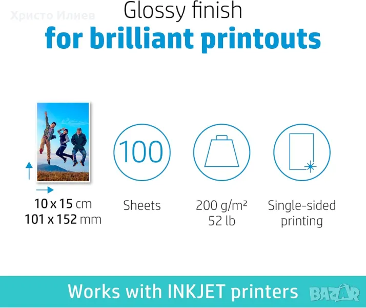 Фотохартията на HP е предназначена за мастиленоструйни принтери на HP, за да предоставя постоянни, качествени резултати и идеалното възможно изживяване