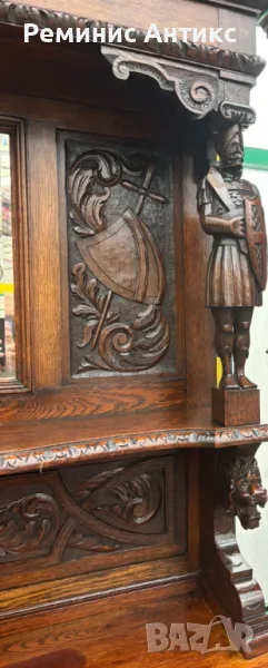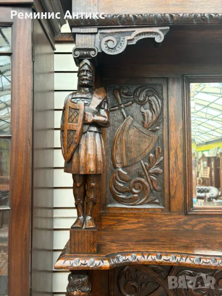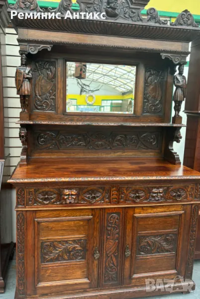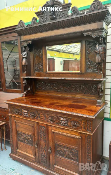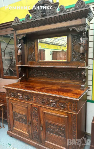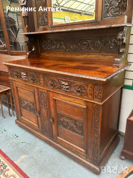Викториански бюфет от дъб с шкаф, дърворезба и огледало → Обява 47661398