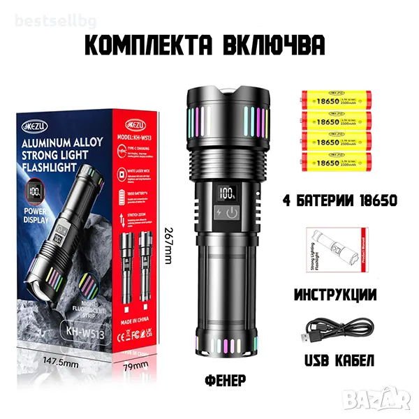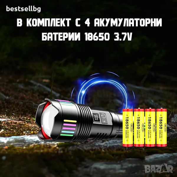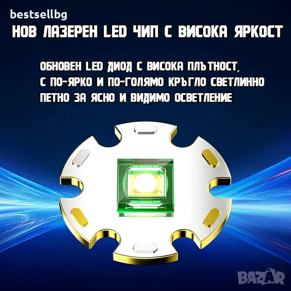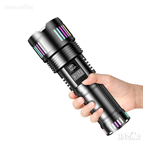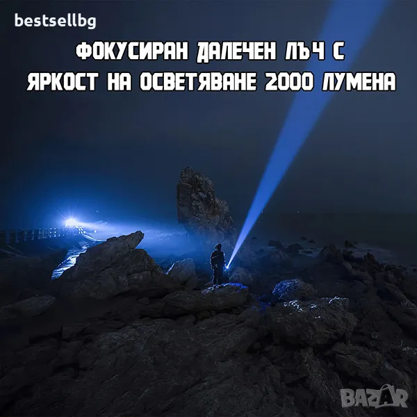 - Изключителна яркост: С мощност от 2000 лумена, този фенер осигурява осветление, сравнимо с прожектор.