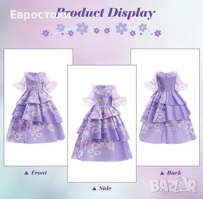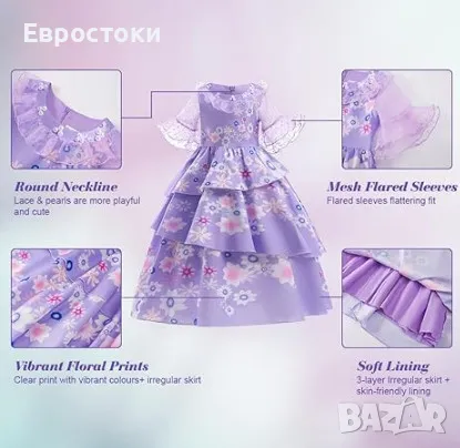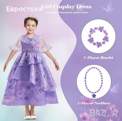 С тази очарователна лилава рокля вашето момиче ще бъде готово да се впусне в собственото си смело приключение като красивата и нежна Изабела Мадригал от анимацията Енканто.