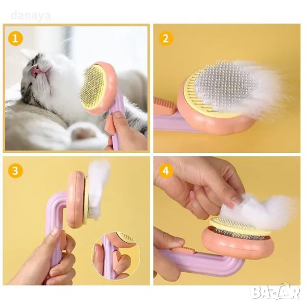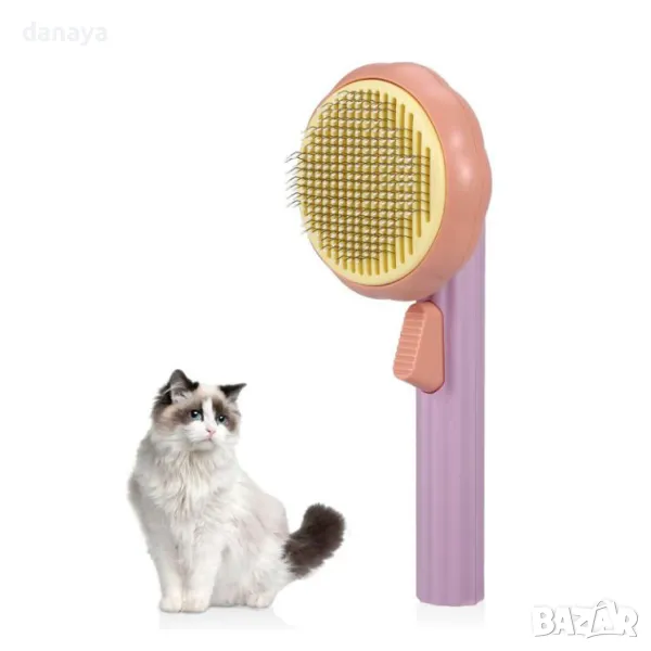 Четка за почистване на кучешки и котешки косми, четка с бутон за лесно отстраняване на събралите се косми.