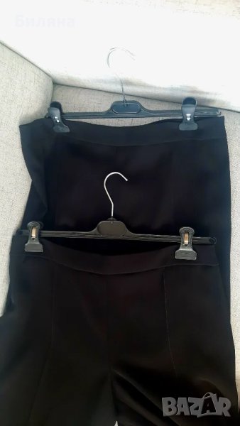 Големи размери. Черна, средно дебела материя, която не орязва, като имат ръб и джобове. Модела е с широк, свободен крачол. Два са 44 размер, един е 42. Закопчаване с цип и копче.