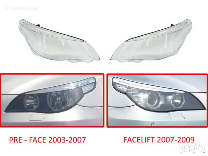 Стъкла (капаци) за фарове за BMW 5 E60 Facelift