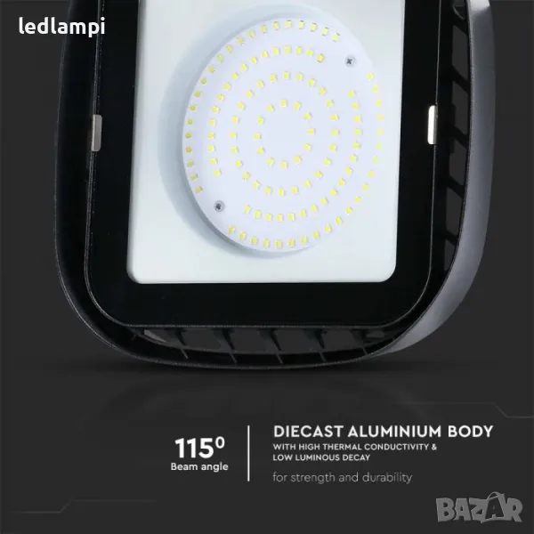 LED Индустриална камбана Мощност: 100W Форма: Квадрат Работно напрежение: 220-240V, 50Hz LED Чип: SMD Цвят на корпуса: Черен Материал: Алуминий Степен на защита: IP65 Ъгъл на светене: 115° Светлинен поток: 8 700 lm Светлинна ефективност (lm/W): 100+ lm/W Експлоатационен срок: 25 000 часа Незабавен старт: 0-100% за <1s Цвят на светлината: Неутрално Бяла 4000К или Студено Бяла 6500К / по избор / RF Фактор на мощността >0.9 CRI Стабилност на цвета >70 Условия за работа: -20 до +40°C Брой превключвани: >15 000 пъти Димиране: Не Енергиен клас: F Сертификати: CE, EMC, ROHS Размери: 230.4 x 80mm Тегло: 1,14 кг.