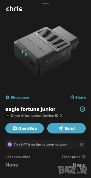 DIMO Macaron е диагностичен уред за коли, който се свързва през OBD2 порта на колата и предава данните през Helium мрежата. В замяна компанията изплаща крипто валута $DIMO всяка седмица на Polygon Network.