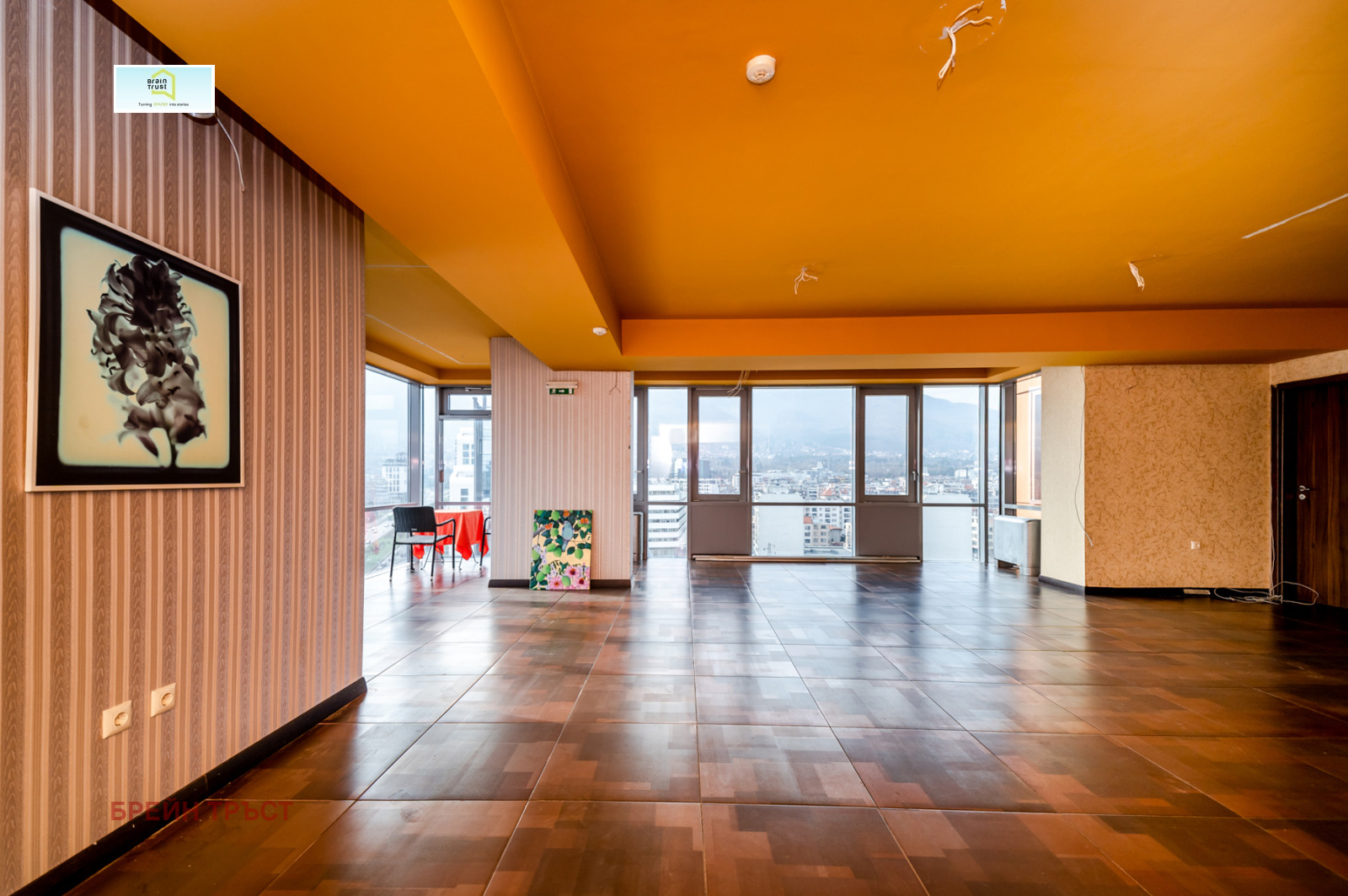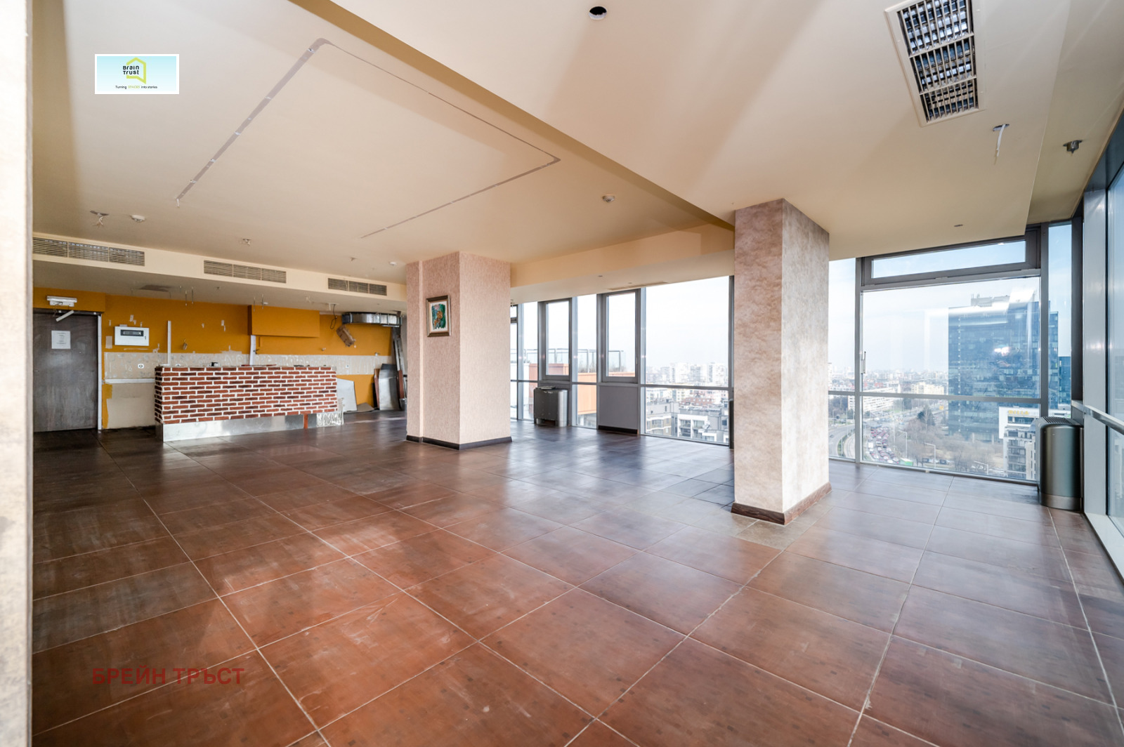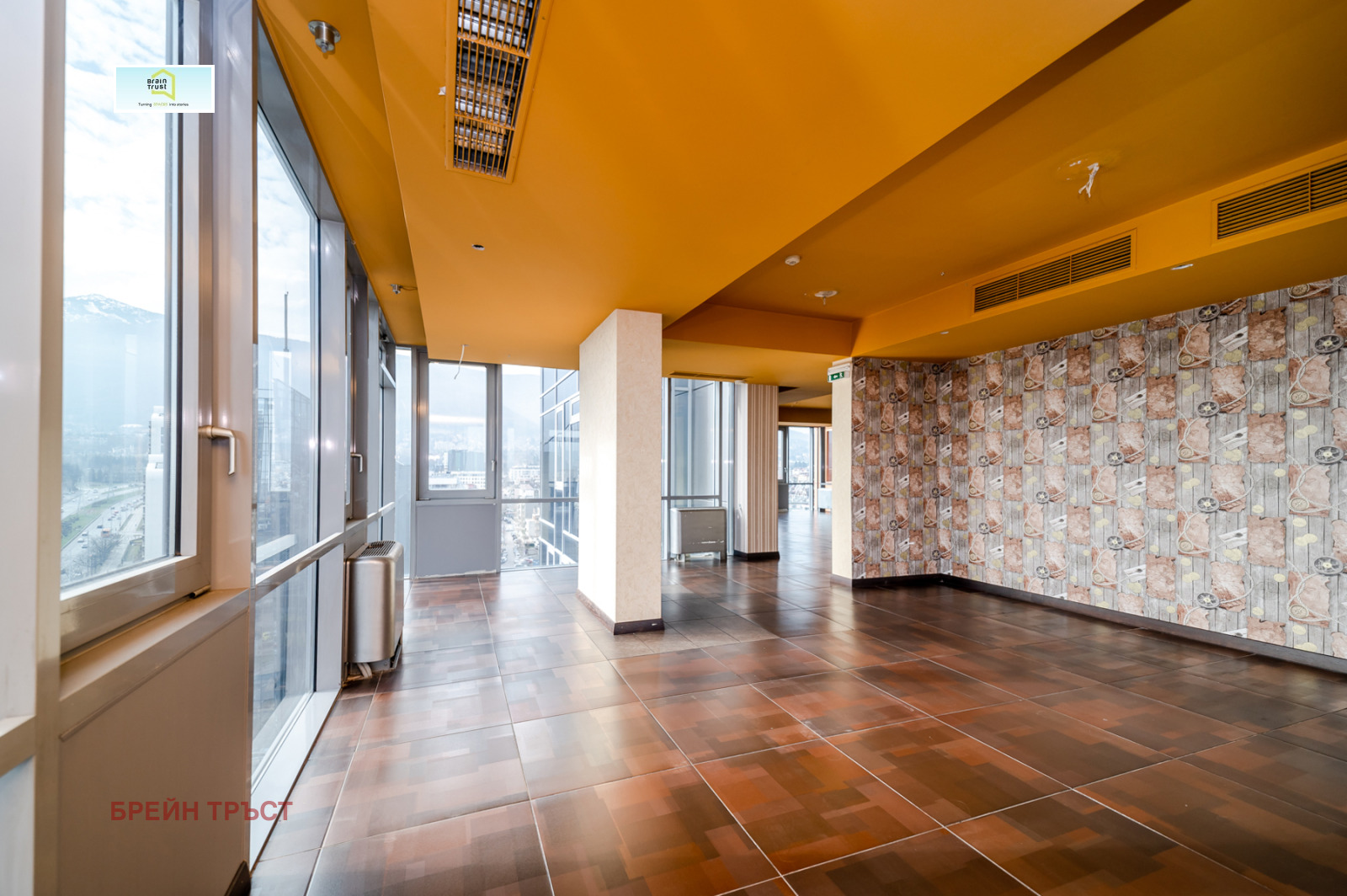 Имотът е разположен на 12-ти и 13-ти етаж в луксозна бизнес сграда, разполага с чиста площ от 519 кв.м и огромна панорамна тераса с площ от 340 кв.м. От френските прозорци се откриват прекрасни гледки към Витоша планина. Помещенията са просторни и светли, асансьорът води директно до имота.