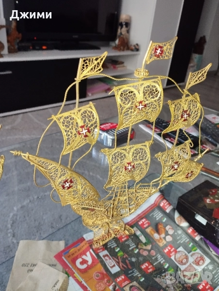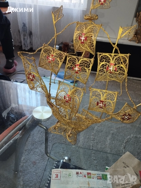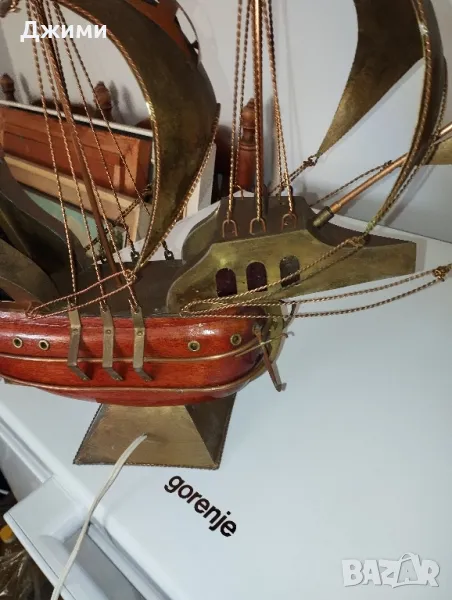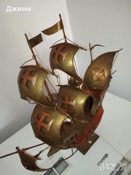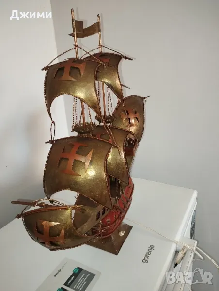 корабът е закупен от Испания изцяло от бронз мед и дърво от което се правят кораби много стар и античен свети перфектно без забележки за размери и допълнителни снимки пишете