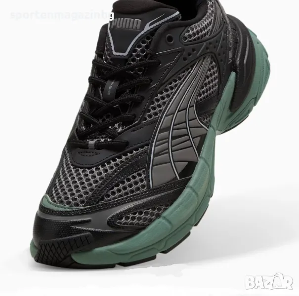 Velophasis се завръща с препратки от миналото, но в съвременна, автентична естетика. Неговият силует е хибрид от 2000-те години, вдъхновен от наследството на PUMA за бягане. Този брутален стил съчетава синтетична и дишаща мрежа с елементи с ярки шарки в горната част. Това изпълнение включва дишаща мрежеста горна част заедно с градиентни детайлни наслагвания и полупрозрачен формован TPU.
