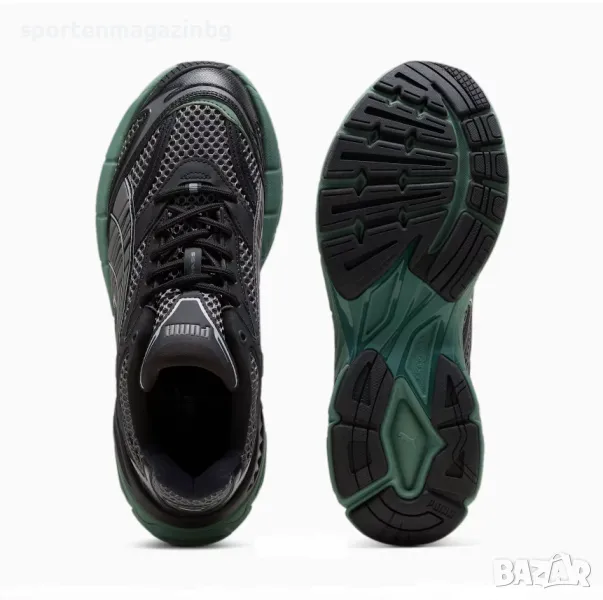 Стабилна текстилна горна част с детайлни наслагвания и TPU елементи за оптимално напасване и комфорт. Гумирана предна част около пръстите защитава най-чувствителната зона от удари и износвания. Допълнително подсилена задна част. Мрежест език със синтетични подложки и текстилна мрежа. Горната част на обувките е направена с най-малко 20% рециклирани материали. Нисък профил за по-голяма свобода при движение. Текстилна вътрешна част и супер омекотена със ситопечатни детайли стелка. В междинната подметка е разположена СMEVA пяна, предлагаща отлични омекотяващи свойства и анатомична опора за краката, тя абсорбира силата на удара при неравни повърхности. PUMA PWRPLATE - това е карбонова плоча в долната част на маратонките, която подобрява възвръщането на енергия с всяка стъпка и тласка бегача напред. Релефната гумена подметка осигурява перфектно сцепление.