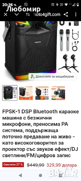 FPSK-1 DSP Bluetooth караоке машина с безжични микрофони, преносима PA система