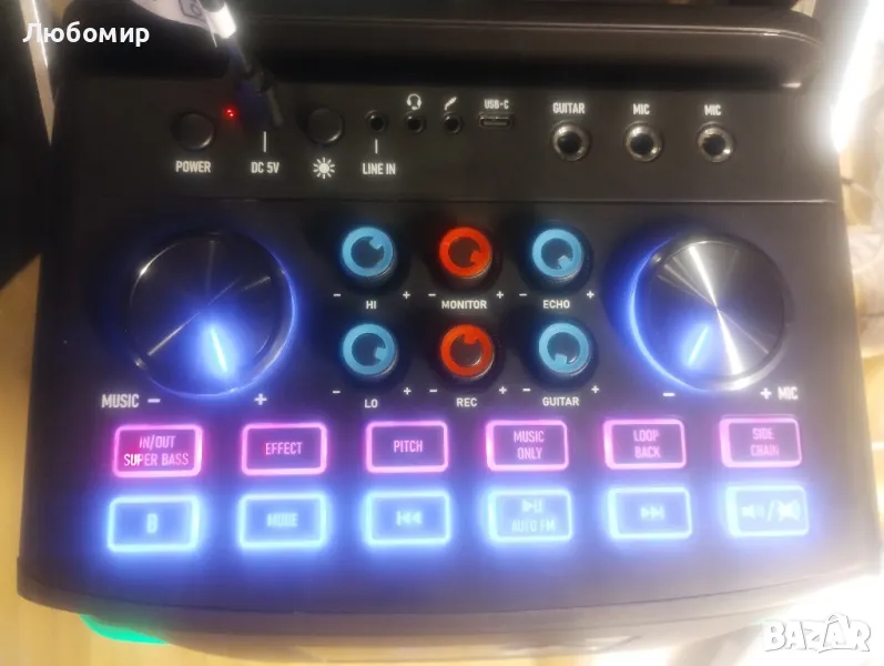 Вход за китара: Разширете творческите си възможности, като свържете електрически китари, баси и други електронни инструменти директно към караоке машината.Bluetooth 5.0: Насладете се на удобството на безжичното свързване с най-новата технология Bluetooth 5.0, позволяваща безпроблемна интеграция с вашите смарт устройства.