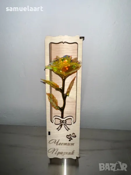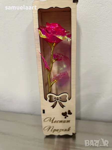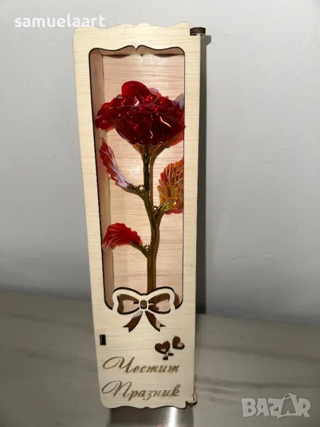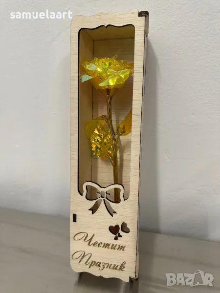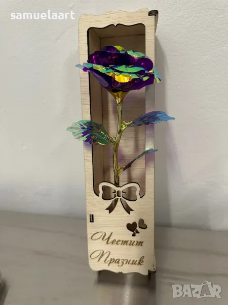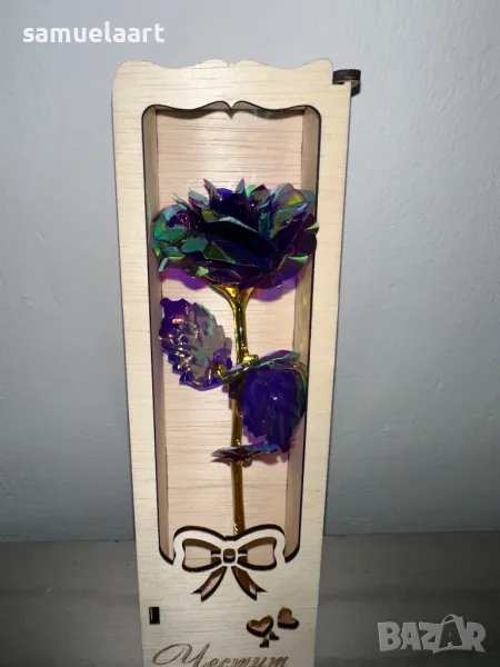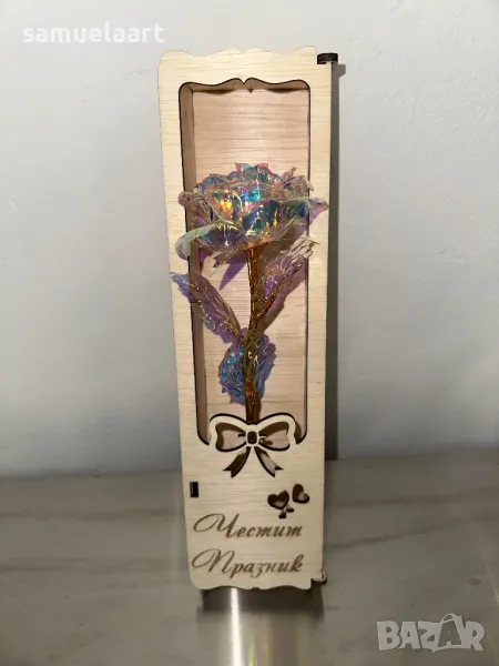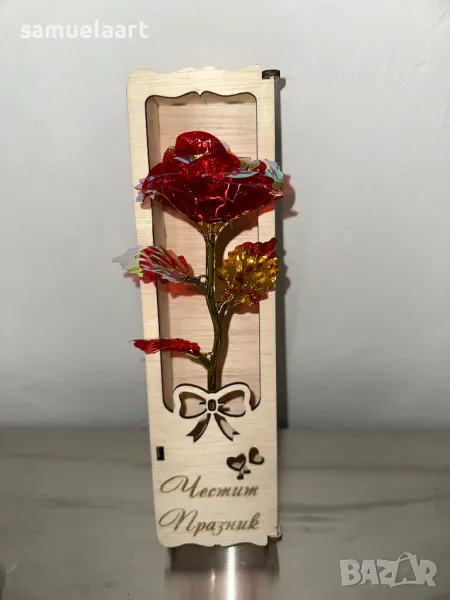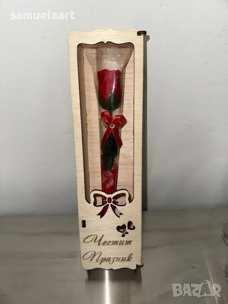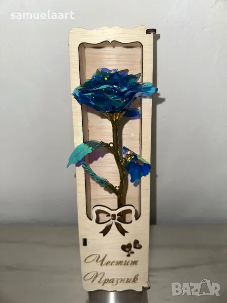 Подаръчна кутия с роза !Кутията е дървена и гравирана с текст по ваш избор!Може да напишем име,послание ,текст по ваш избор!Височина на кутията 30 см!Розата може да бъде синя,розова,червена,жълта,сребърна,лилава #рожден ден #именден #годишнина # осми март #годеж #сватба #мама #