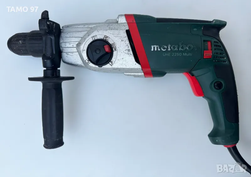 Метабо в отлично визуално състояние и работи перфектно, оригинално немско производство внос от Франция. Перфоратора се продава така както си е на снимките с втория допълнителен патронник за метални и дървени свредла.