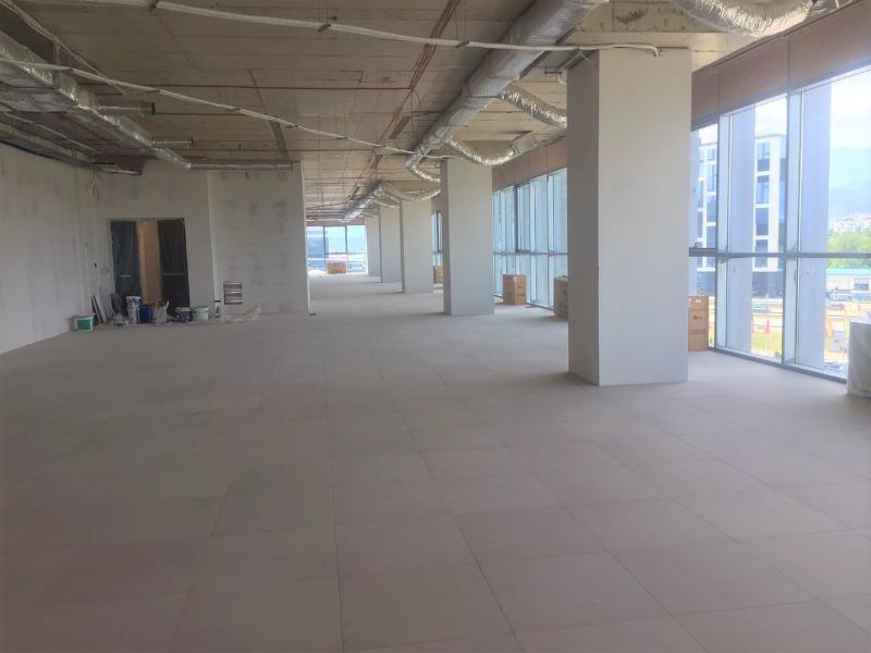 Разпределение: самостоятелен етаж, голямо тип Open space пространство, с възможност за преграждане спрямо нуждите на наемателя, обособен кухненски бокс, сървърно помещение, 12 wc.